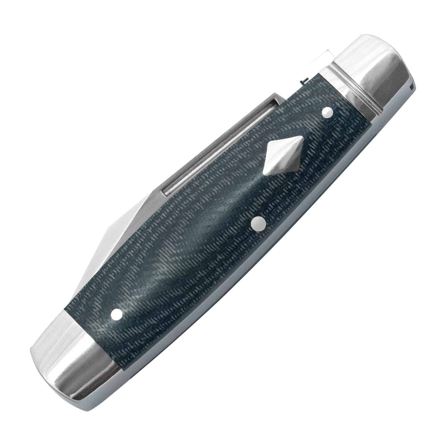 The RoseCraft Barren Fork Jack Blue Denim Micarta is a one-bladed square-end jack pattern that features a 2.9” 14C28N classic clip point blade with a brushed satin finish, long pull, half-stop and heavy swedging. It has blue denim Micarta covers with brushed stainless steel bolsters, liners, and nickel silver pins. It carries the RoseCraft Diamond shield. This is the first offering from RoseCraft with 14C28N stainless steel. It’s 3.625” closed, 6.5” overall, and weighs just 2.8oz. This pattern was inspired by a very old NON-XLL pattern by Joseph Allen & Sons of Sheffield and re-imagined by Andy Armstrong.