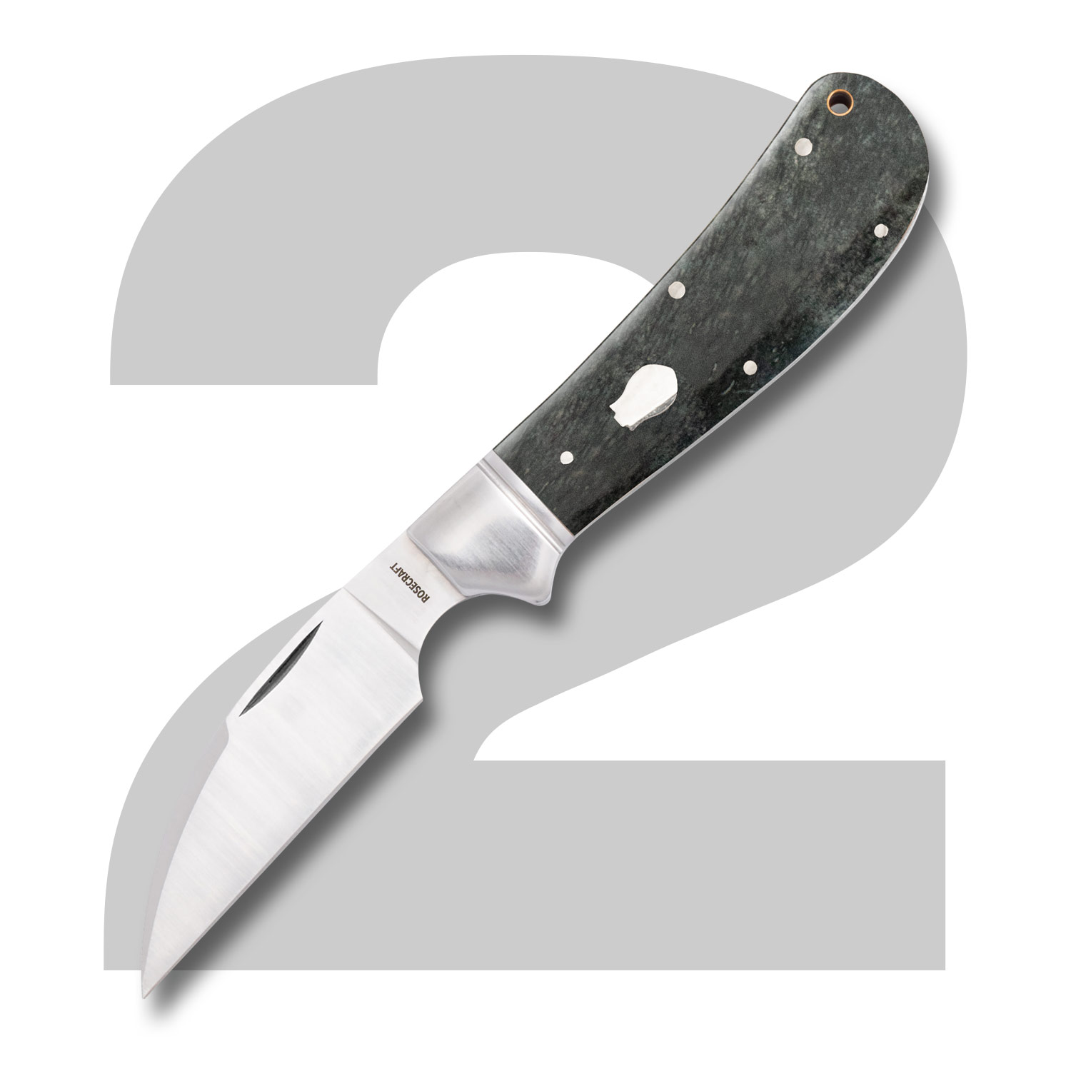 A note about RoseCraft’s bone handles: Bone is a natural handle material that varies in texture, pattern, and natural coloring. Every bone handled knife will look different, because bone isn’t identical. At RoseCraft, we don’t use dye to cover up what we think is the natural beauty of the bone in the handle. We use it to accentuate that natural beauty, and you’re going to see a lot of that gorgeous natural texture and pattern that is in your unique bone-handled knife. We love it, and hope you do too.
